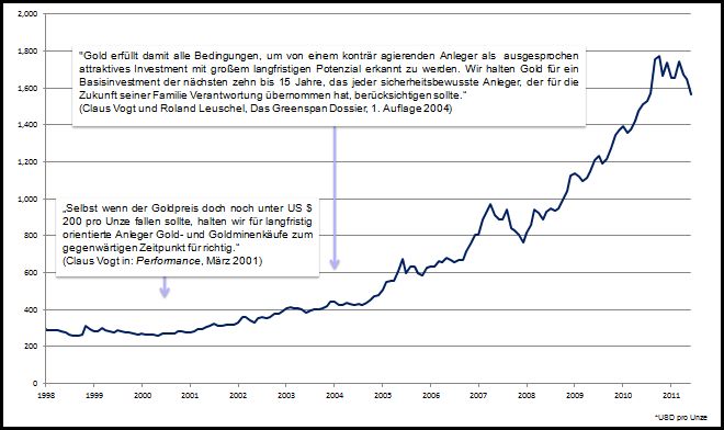 „Gold erfüllt damit alle Bedingungen, um von einem konträr agierenden Anleger als ausgesprochen attraktives Investment mit großem langfristigem Potenzial erkannt zu werden. Wir halten Gold für ein Basisinvestment der nächsten zehn bis fünfzehn Jahre, das jeder sicherheitsbewusste Anleger, der für die Zukunft seiner Familie Verantwortung übernommen hat, berücksichtigen sollte."